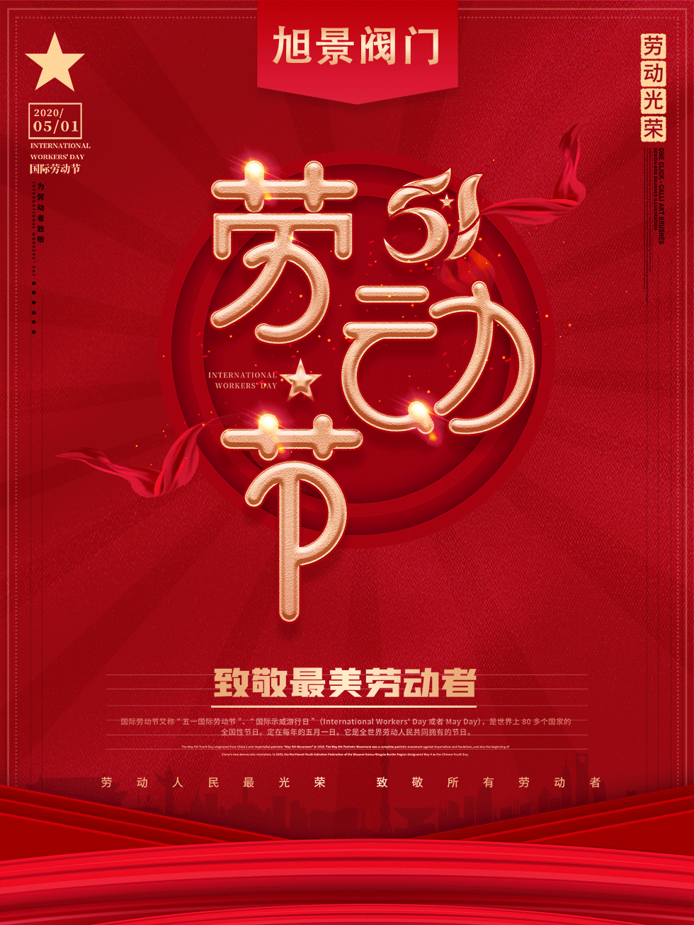 尊敬的客戶:你好! “為夢想奮斗的你是最光榮的勞動者” 清淺時光,歲月靜好。時光不知不覺即將邁過了四月。轉眼間,我們將迎來了不平凡的五月。 一年一度的五一小長假將至,在這里浙江旭景泵閥有限公司全體員工向您及您的家人送出最真摯的祝福,提前祝大家勞動節快樂! 感謝您一如既往對浙江旭景泵閥有限公司的支持與信賴! 五一假期業務服務熱線:13868378818 最后祝大家:五一勞動節快樂!