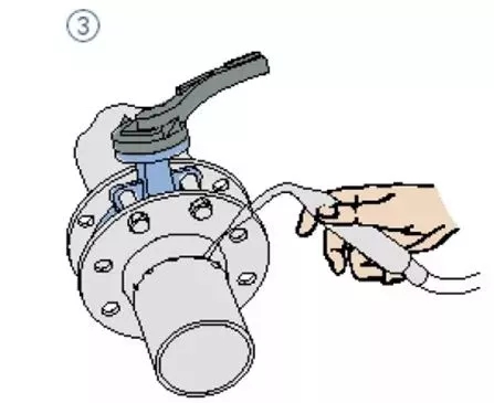 6、待焊口冷卻后再安裝閥門。保證閥門在法蘭中有足夠活動(dòng)空間以防止閥門被損壞,并保證閥板有一定的開度;