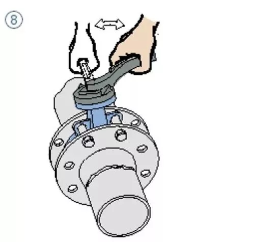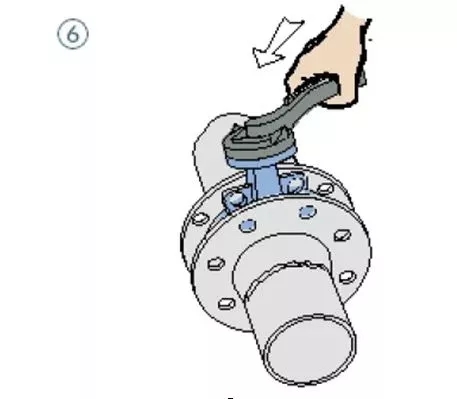 7、校正閥門位置并將四對(duì)螺栓擰緊,(注意不要擰得過(guò)緊)