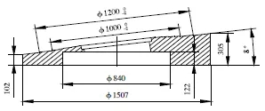 1,先在2.5m立車上分別把蝶板和壓環(huán)上的各止口加工到圖紙要求尺寸,外圓不加工;
